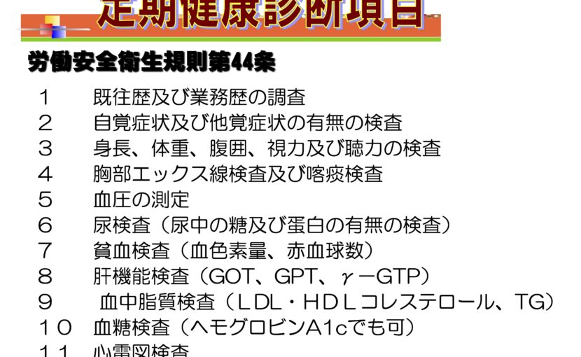定期健康診断項目は、労働安全衛生規則第44条で次のように定められています。