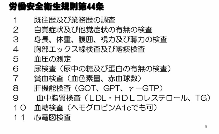 定期健康診断項目は、労働安全衛生規則第44条で次のように定められています。
